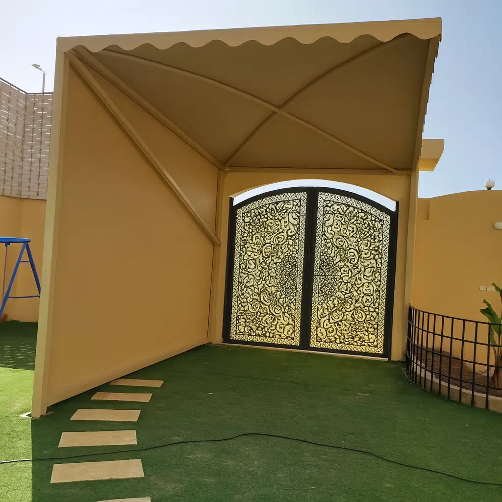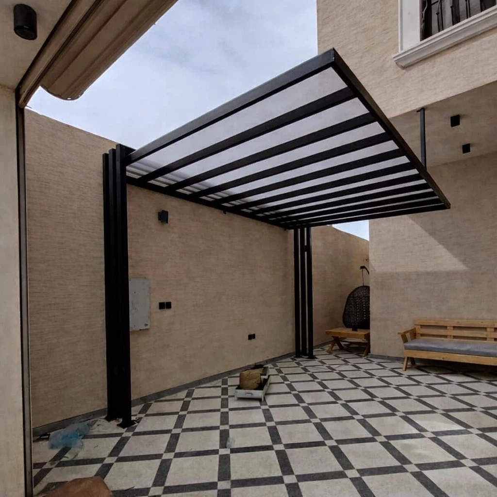 - تصميم المظلات حسب قياسات المكان بدقة عالية لتناسب كل مساحة.
